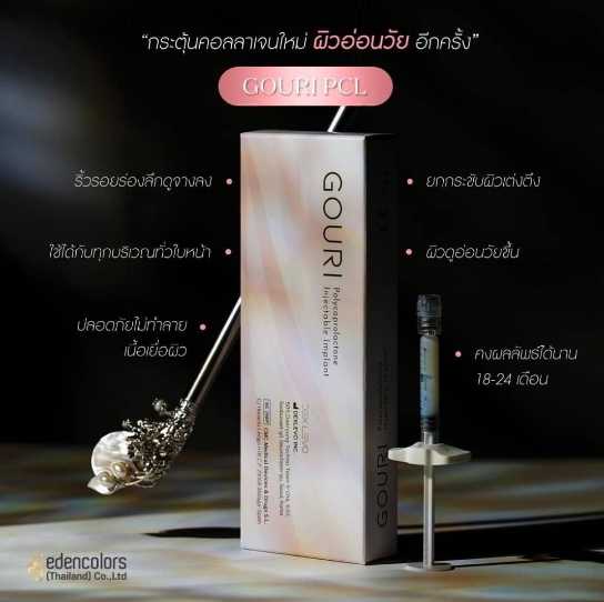 GOURI คืออะไรGouri (กูริ) เป็นสาร PCL แบบเหลวที่ฉีดเข้าไปใต้ผิวเพื่อกระตุ้นให้เกิดการสร้างคอลลาเจนใต้ชั้นผิวหนัง ถือเป็นนวัตกรรมใหม่ที่น่าสนใจอย่างมาก ช่วยแก้ปัญหาริ้วรอย ผิวเหี่ยวย่น กระตุ้นการสร้างคอลลาเจนทำให้ผิวหนาขึ้น ยืดหยุ่นขึ้น ผิวเรียบเนียนใส